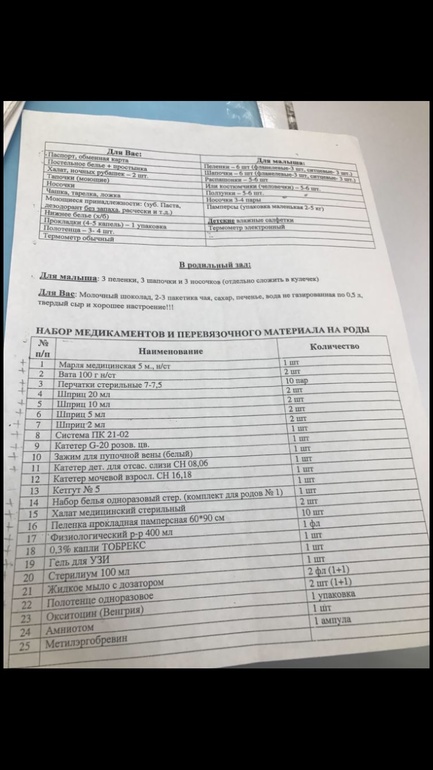 Набор медикаментов - по потребности. Все у них есть, докупим то, что по факту будет потрачено. Врач сказал что этот список чисто ознакомительный. А вот то что нужно в родзал, и вещи для мамы и малыша - это обязательно ( по опыту что понадобиться) я первого рожала в этом же роддоме - список был тот же))))