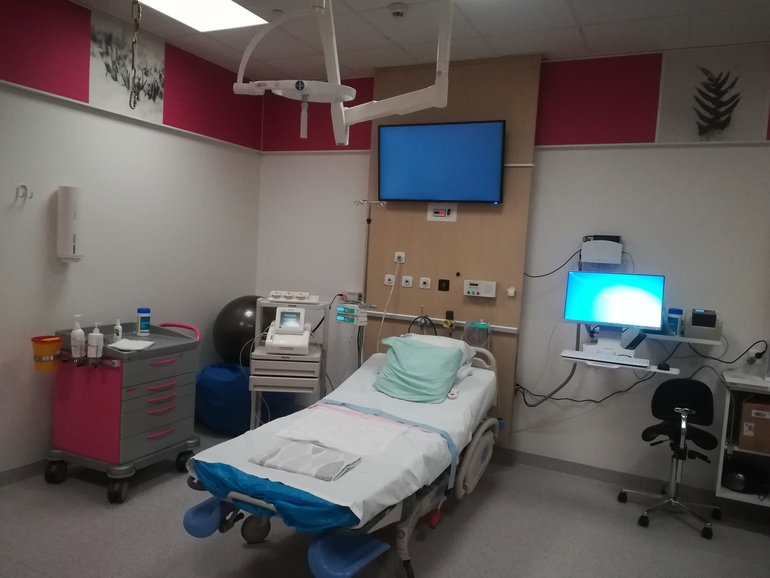 Сейчас в Тампере новое родильное, и больше нет отдельного приемного - заезжаешь на стоянку, и на лифте поднимаешься прямиком в родильное, отлавливаешь там свободную акушерку и идёшь с ней в палату, прямо в обуви и верхней одежде😁 Судя по записям, в палате мы были в 5:43. Акушерка попалась какая-то слегка вялая и безразличная, но может она просто устала к концу смены. После того, как проверили мой айди, меня спросили, хочу ли я переодеться в больничное или буду в своем. Я решила сразу переодеться - процесс непредсказуемый, а пачкать свою одежду я не хотела. Так я получила ночнушку, белые носки и трусы в сеточку☺️ Проверили раскрытие (я была в шоке: всего 3-4см😳, но хоть шейка сгладилась), и меня подключили к КТГ. Тогда я подумала в очередной раз, что неужели это опять тренировочные🙄 Я честно пробовала лежать первые минут 10-15, но было больно и не удобно. И ещё я была в шоке от того, что на КТГ схватки были почти не видны, хотя боль была сильная, и грелка, которую я взяла в качестве обезболивания "для начала" мне никак не облегчала состояние. Так что я попросила встать, ибо датчики беспроводные и позволяют быть где угодно. На всякий случай в руку поставили катетер. Во время КТГ мне задавали разные уточняющие вопросы по здоровью и беременности, которые я не заполнила в своей он лайн карте (в Тампере сейчас только электронная карта беременности, бумажных больше нет). Спросили про пожелания а плане обезболивания - все что угодно, смотря по обстоятельствам😉 от эпидуралки пока отказалась, думала, что смогу ещё походить, но быстро боль стала постоянной и я попросила обезболивание. Надо же хоть в третьих родах попробовать, что такое эпилуралка😅