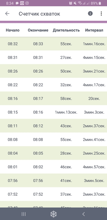 Меня смущало, что приложение за столько часов до сих пор не отправляет меня в роддом (видела здесь на сайте в постах других девочек скрины таких приложений). Начала гуглить какая должна быть периодичность схваток, чтобы ехать в роддом, не фига не поняла (видимо мозг уже не особо работал😈).Сделала скрин, выложила в местную группу с мамочками в соцсети, там подняли кипишь и быстренько сказали вызывать скорую.