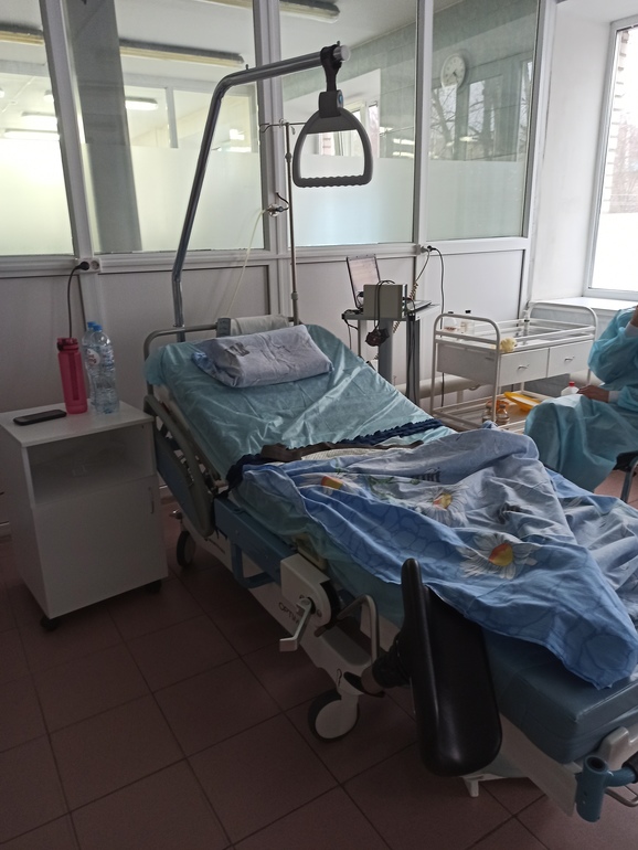22:00 Просыпаюсь, муж рядом, держит за руку. Говорю, что боль вернулась, но пока терплю. Он убегает за врачом, осмотр: полное раскрытие! Готовят к потугам. Так как ноги не слушаются, рожать приходится на спине, но хоть не лёжа. Финское кресло трансформируют в полусидячее положение, надевают одноразовые краги (или как они называются), врач переодевается в одноразовую накидку и моет руки. Вот тут мне становится страшновато. Чувствую потуги.