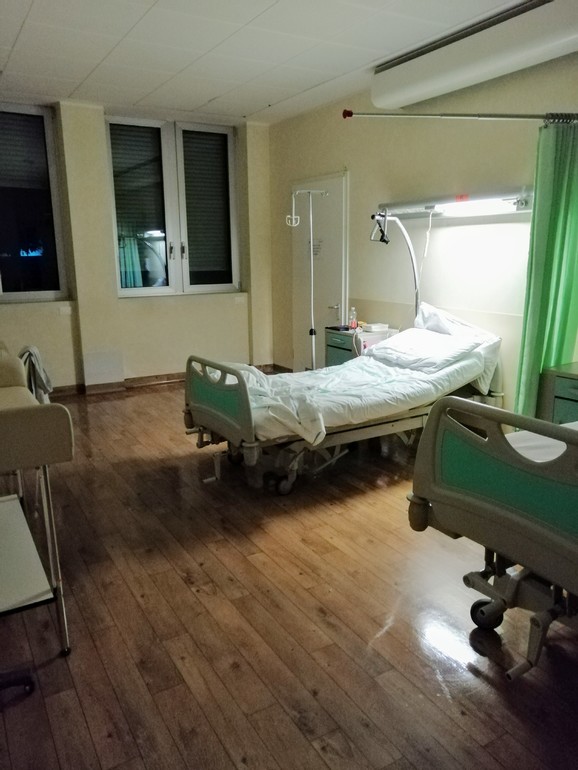 поставили капельницу и КТГ, важно отметить что чувствовала себя хорошо, ктг хорошее, но за ночь меня навещали 2 раза, повторяли ктг и спрашивали все ли хорошо, не нужно ли что-то 😃 Палата на двух человек, но в период эпидемии Коронавируса до готовности анализа размещают по одному человеку, результат приходит через 24 часа, потом переводят в палаты по двое. Утром, в 8 пришёл доктор на осмотр, который проводится прямо в палате, вместе доктором ходят медсестры и возят шкаф на колёсиках со всякими нужными штуками и историями😀 В 8 утра обнаружили 2-3см открытия и небольшую кровоточивость шейки... В связи с тем, что подтекание вод было неопределённое количество времени, тампон на стрептокок положительный, есть риск проникновения инфекции (антибиотик мне уже успели прокапать 3 раза, т. е каждые 4 часа) шейка готова, было решено провести амниотомию. .. я уже понимала, что это значит на открытии 3 см, что ждать мягких схваток после вскрытия плодного пузыря не придется😣 В 8:30 уже в род. зале провели амниотомию, схватки стали чувствительны уже через 30 мин. муж уже ехал ко мне... надо отметить, что тут в основном рожают с мужьями, все, молодые и не очень, итальянцы и эмигранты, так принято, при этом муж ни каких анализов не предоставлял🤷♀️Примерно к 9 приехал супруг, я уже корчилась, стоя возле кровати... Хочется отметить родовой зал, естественно всё необходимое оборудование кровать-трансформер, стол для ребёнка, мячь и т. д.. интересно, что приглушенный свет, от этого как-то спокойнее что ли.. при осмотре подсвечивают только нужное место😉Кстати, осмотры во время схваток были не болезненные, я сделала вывод, что "подрастянуть шейку" руками мне не пытались 🙏(опыт первых родов🤦♀️) Через час стоять было уже невмоготу.. ноги подкашивались и я немного подвывала, на выдохе (как учили на каких - то видеокурсах)... Боль просто выключала разум и скручивала, я охреневала от осознания того на сколько РАЗными бывают роды, у одного и того же человека!!!! (Теперь я точно знаю ответ на вопрос: "а чего она так орёт?" )
