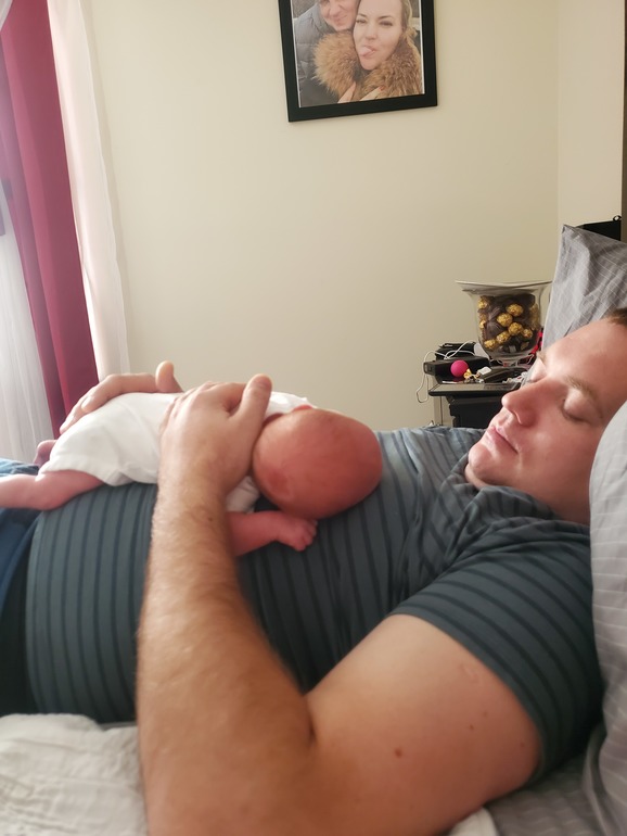 Как не странно, мой любимый мужчина, выглядил спокойным, уравновешенным и невозмутимым, хотя это его первенец, и я почему-то думала, что он будет переживать больше чем я, но он меня еще старался успокоить:) держа меня за руку и гладя по голове он сидел с невозмутимым видом рядом. Когда достали нашу крошку и мы услышали ее первый писк, поздравили ее с появлением на свет и сказали время 9:06 вечера, 2900 весом и 47 см ростом и 8/9 по Апгар. Мужа пригласили перерезать пуповину и присутствовать при чистке новорожденной. Как оказалось по приборам ее кислород совсем каплю меньше положенного был и ее подключили к CPAP, плюс у нее была небольшая желтушка ее забрали в отделение для недоношенных, муж пошел с ней. Неонатолог сказал, что она не выглядит, как будто ей не хватало кислорода, так как детки, которым было его не достаточно выглядят по другому, но потому что приборы так показывали нужно было поддерживать его. Ей давали в принципе 21 % кислорода, что было равносильно обычному воздуху в помещении, но СРАР давал этот кислород под давлением, "заставляя" малышку его получать. В то время как муж был с малышкой меня штопали, что для врачей было не сильно легко из-за количества рубцов на матке и мышцах живота от предидущих операций. Когда меня заштопали, отвезли в послеоперационнуую палату, куда пришел муж от малышки и расказал мне эти новости. Не буду лукавить, я расстроилась, вспомнив то как лежала с Заркой, которая тоже была в отдедении интенсивной терапии. Нам подключили специальную программу на телефоны, на которой мы могли наблюдать за малышкой 24/7 в любое время по камере, которая была над малышкой. Потом меня мовезли в мою палату, которая в принципе такая же как были и в первые разы, только с двумя одинаковыми кроватями для роженицы и супруга. Мне подключили антибиотики, потому что за 4 дня до кесерева мне пришел положительный STREP B тест, и я и малышка должны были пройти курс антибиотиков. Так же из-за того, что дочка была подключена к СРАР ей ввели зонд и давали пищу через него, пока не сняли CPAP кормить грудью или бутылочкой было нельзя. Поэтому я пыталась сцедить и заморозить молозиво. СрАР сняли на следующий день, а зонд еще на следующий день. Первое кормление было мое молозиво и докорм смесью, так как его было недостаточно и мучать дочь голодом я не хотела. А потом начало приходить молоко, которого было достаточно и я начала таскать бутылочки дочке. Когда сняли СРАР обнаружилась другая проблемма - дочка сьедала слишком мало, 35 грамм всего что было минимумом в принципе, но не достаточно, чтоб ее можно было забрать к нам в палату. Потом обнаружиломь, что она не могла контролировать глюкозу в коови, и она падала. Ее подключили к капельнице с глюкозой. Для того, чтоб отключить ее от капельницы, каждые 3 часа перед тем как я кормила ее ей брали кровь и меряли показатели глюкозы. 24 часа она должна была ее держать выше 60. А потом как отключат она должна была ее держать 24 часа выше 60 без капельницы.