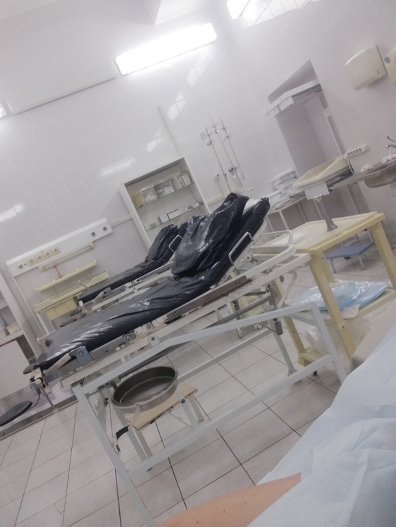 После всех манипуляций меня на два часа оставили с малышом на этой кушетке, приходили каждые 15 минут давили на живот, чтобы выходили сгустки, это больно! Я думала мне все внутренности выдавят