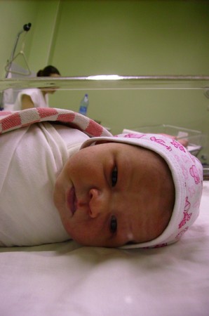 И вот я уже в послеродовой палате. С той же Катей, с которой лежала перед операцией. Обе с распоротыми животами, отходим от наркоза. Отходила тяжело, жутко болел живот. Вечер мы провели одни, без детей, прикованные к кровати и катетору. Из еды-вода без газа. На следующий день (а это заметьте 31 декабря) нам принесли для знакомства детей. Положили рядышком с мамами. У Кати девочка и у меня девочка Лизонька (вес 3400, рост 51).
