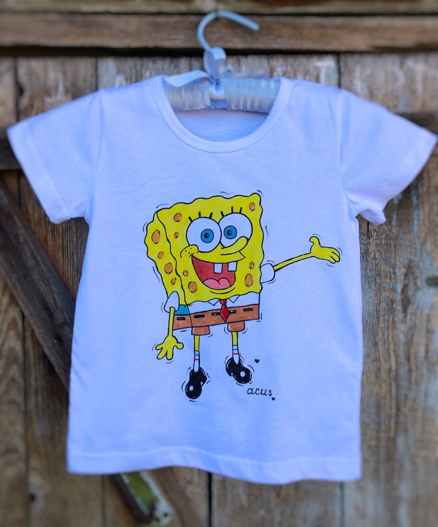 Спанч боб - идеальный персонаж для летней футболочки. Скоро будет ещё один. Для двух братишек. Роспись по ткани стойкими красками.