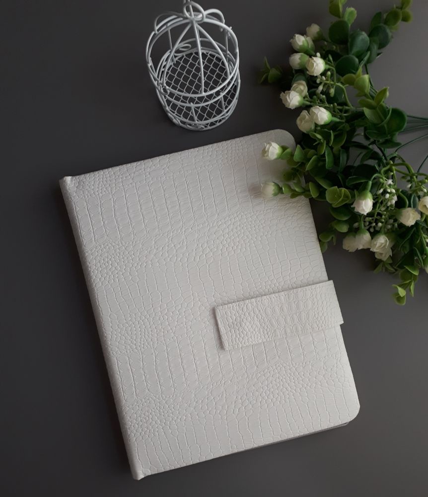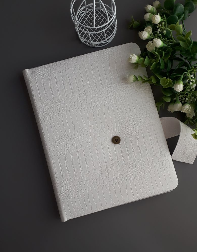 Обложка обтянута замшей, украшена тиснением и шейкером