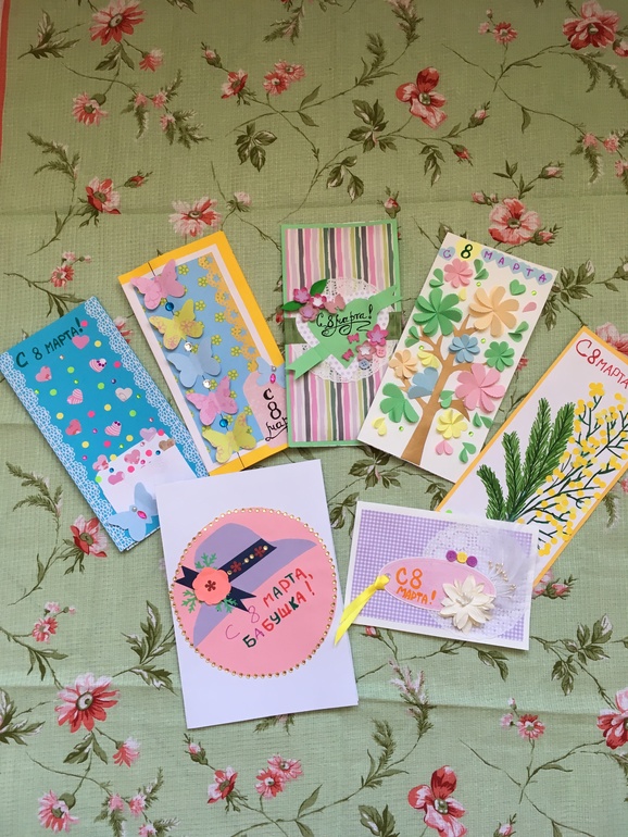 Близится 8 марта, и мы для наших бабушек, теть и воспитателей начали делать открыточки