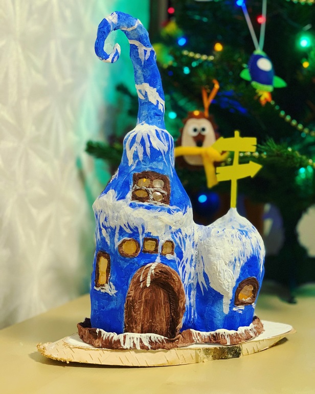 В этом году в качестве новогодних поделок предложили сделать домики. Вот наш такой