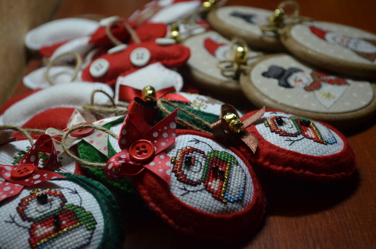 Посмотрела вживую на чудесные вышитые игрушки Катерины и новогодние декупажные шарики Татьяны Шараповой. В работы этих мастериц я просто влюбилась)))
