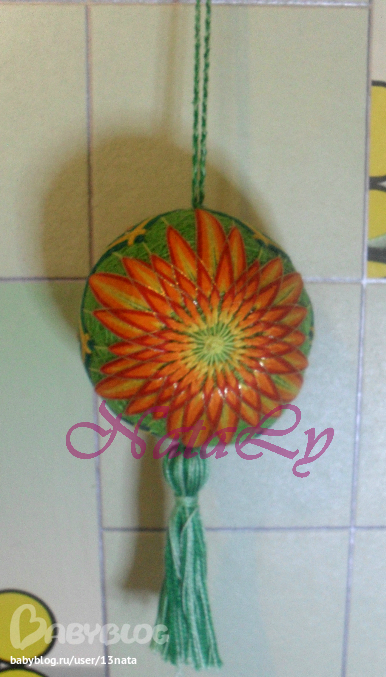 Делаю подвеску для подруги, и все вроде ничего, да вот только не могу понять ну как, ну кааак у цветочка сделать круглые лепестки, а не острые? Может нитку не в натяг класть а самой полукругом выкладывать, а не провиснут ли ниточки тогда. Если кто знает подскажите. Мне темари мой очень нравится, только хочу круглые лепесточки и все тут.