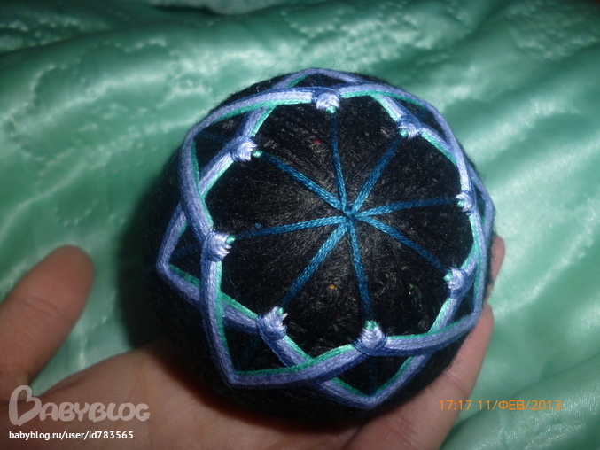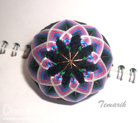 Вчера попробовала сделать сама первый раз Темари..очень понравилось..но незнаю как вышить середину..просто обмотать не хочется и кажется что цвета не очень подобрала(( Заранее спасибо, джу ваших комментариев)