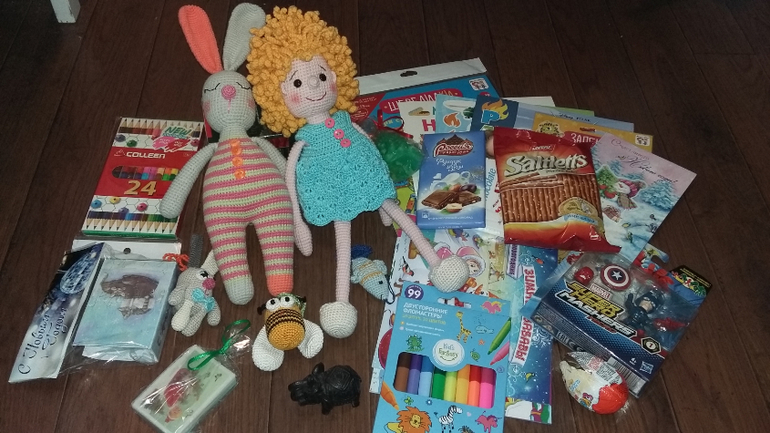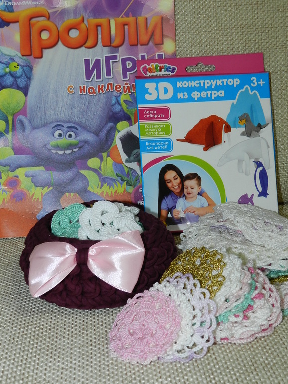 Получила я посылку от Александры. Какая же красота. Все такое милое. Как всегда вся работа по качеству на высоте. Спасибо большое. А ещё мы получили кучу подарков и да же для меня шапочка)😻😻😻😽 ну и фото)
