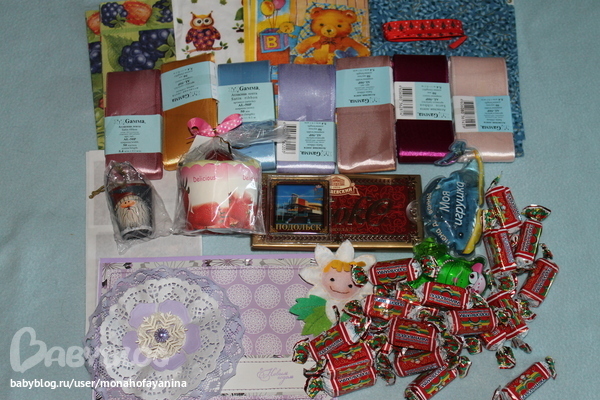 Ирина http://www.babyblog.ru/user/lenta/irinafff, с которой мы решили организовать междусобойчик. Когда приехала ко мне ПОСЫЛОЧКА из столицы с кучей подарищей!!!, моему восторгу небыло предела, я и прыгала и радовалась... я чуть не плакала от счастья, это что-то неймоверное!!! - ну судите сами....