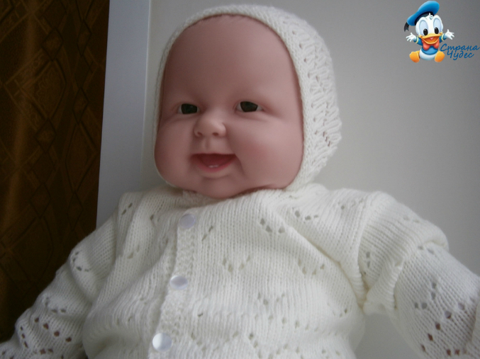 Вяжу этот комплект уже в третий раз и каждый раз что-то да меняется в нем..В этот раз мамочка будущей хозяйки захотела заменить штанишки на штанишки с грудкой и застежкой на плечиках.