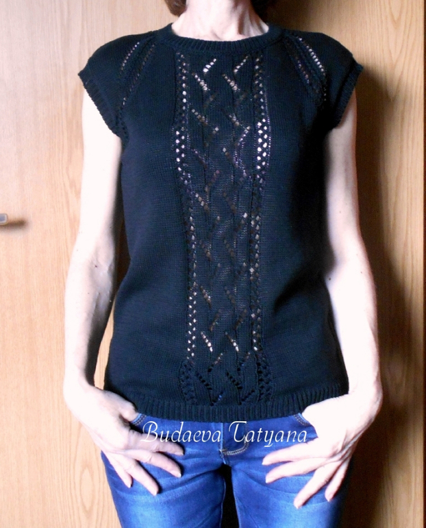 Очень мне нравится эта модель,теперь ещё из хлопка хочу такую.Эта связана из мериноса итальянского стокового,но совсем не жарко в нём.Ну и фото на лоне природы.