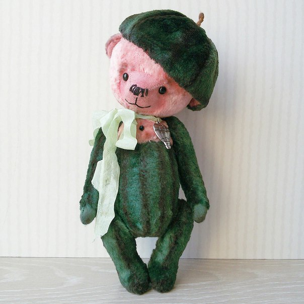 Добрый вечер! В Краснодаре стоит сильная жарища. Хочется прохлады и побольше жидкости! Арбуз сейчас в самый раз!!! И вот на одном дыхании придумался и сшился у меня такой вкусный и сочный мишка!