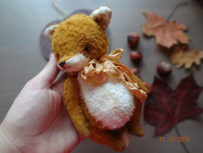Лисенок тедди сшит из немецкой вискозы. Внутри опилки и металлический гранулят. 6 шплинтов,голова покачивается. Украшен лисенок шебби лентой. Лисенок сшит полностью вручную с большой любовью и теплом.
