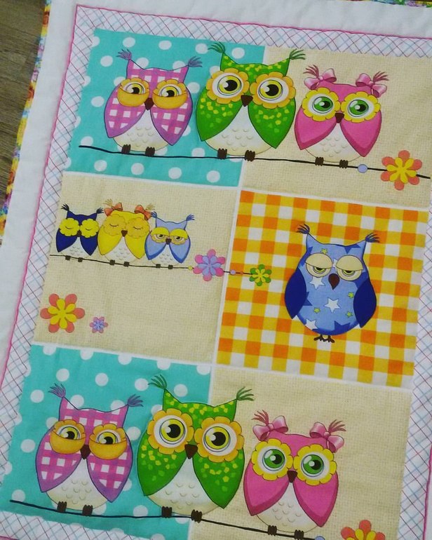 Покрывало и три подушки. Подойдет как мальчику, так и девочке. Размер покрывала 118*90, подушки 40*40. Это работа моей мамы)