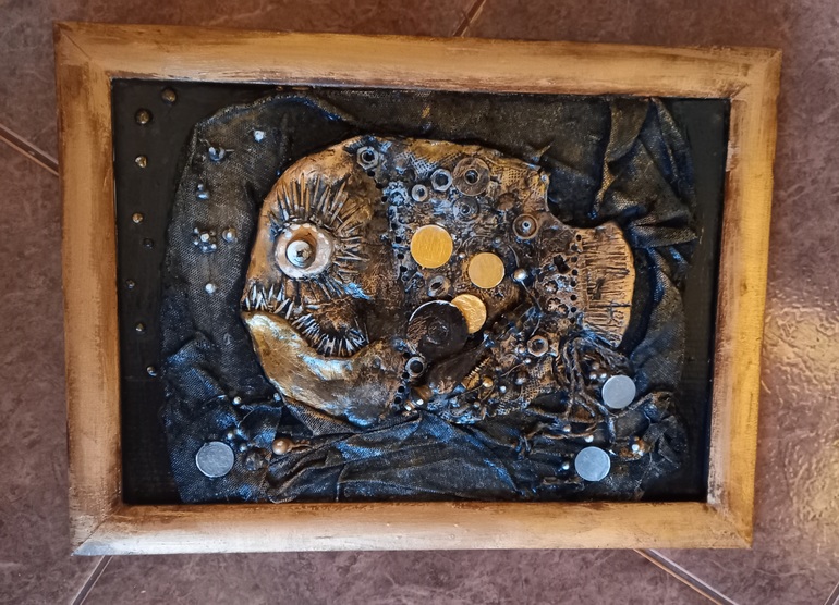 Творческие работы . Панно . Материал глина,картон, металл,ткань,пластик,акрил,лак.под кат 2 фото