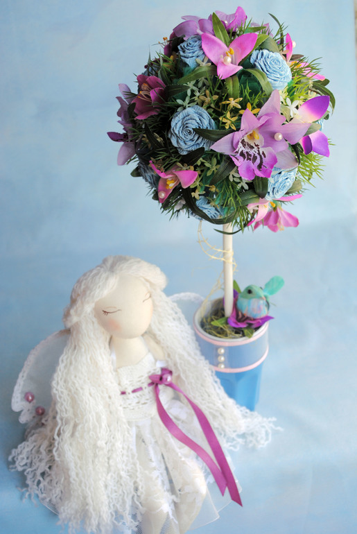 Впервые попробовала цветочки из это замечательного материала. Вообще узнала о нем примерно год назад и даже купила лист молочного цвета. и так он и пролежал до этого марта. Наконец собралась и сделала два топиария в качестве подарочков на 8 марта.