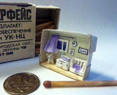 Монетка, спички и коробок естественных размеров - для масштаба. Под катом еще несколько ракурсов и деталей.