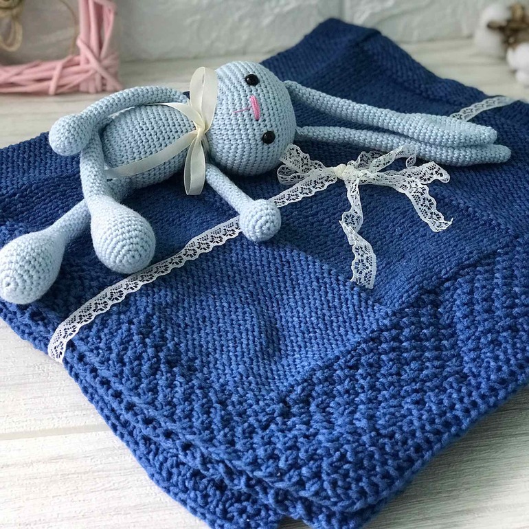 Плед хлопковый, плюшевый мишка, держатель-грызунок и хлопковая зайка