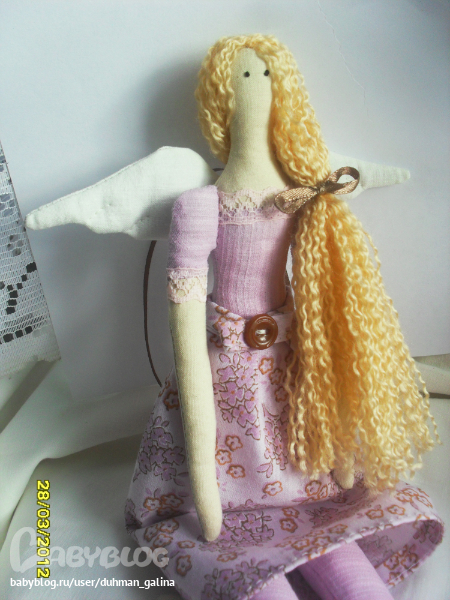 На днях сшился новый ангел) Вот такая блондиночка в сиреневом платье))Златовласка)Хотя мне сказали что она похожа на Рапунцель