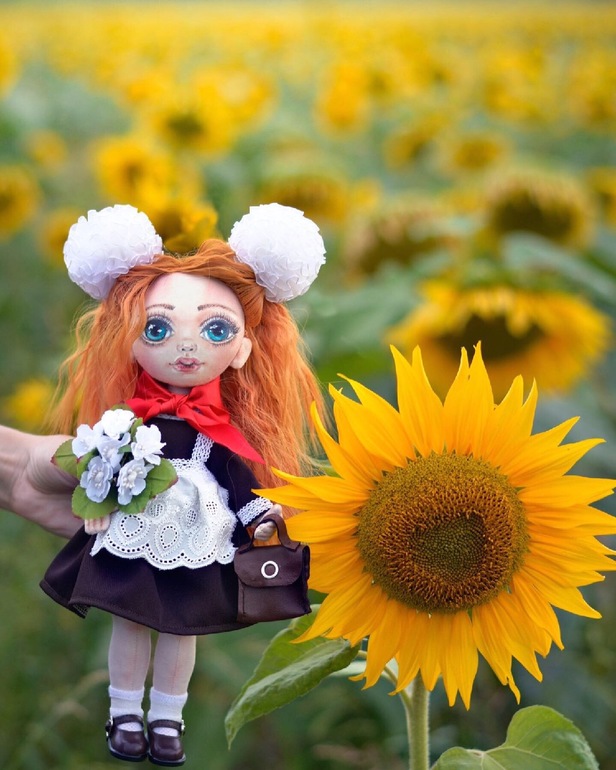 Скоро в школу! Back to school! Куколка ростом 32 см. Вся одежда снимается. Голова поворачивается. Ноги и руки на проволочном каркасе. Волосы можно расчёсывать.