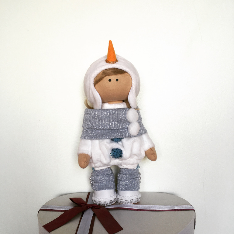 Кукла текстильная, интерьерно-игровая. Рост 25 см. Стоит, сидит самостоятельно. Ручки сгибаются и фиксируются в любом положении.