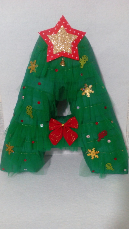 Вот такую буковка А в виде елочки сделала дочке на конкурс буквы. Высота 30см