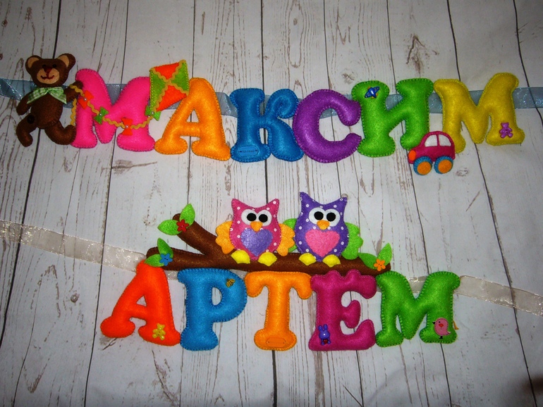 Хочу пристроить в добрые руки две свои именные гирлянды из фетра.Были сделаны для обменчика, со своей стороны я все выполнила,но обмену не суждено было случиться((((.Почему,мне не совсем понятно,вроде все было обговорено,и я честно терпеливо ждала целых полгода....Поэтому,кому они понравятся,с радостью поменяюсь .
