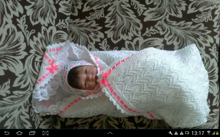 Плед из итальянского хлопка, 85×85см, связан спицами 2,5, шапочка связана тем же рисунком, что и плед.