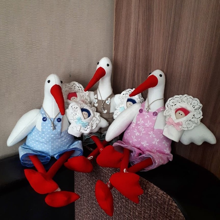 Захотелось сшить тильда аиста. И как обычно,он не мог сшится один, получилось сразу три ))