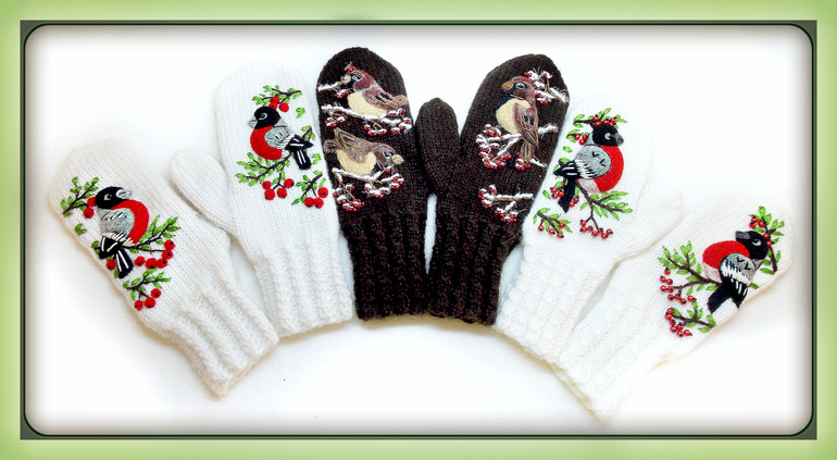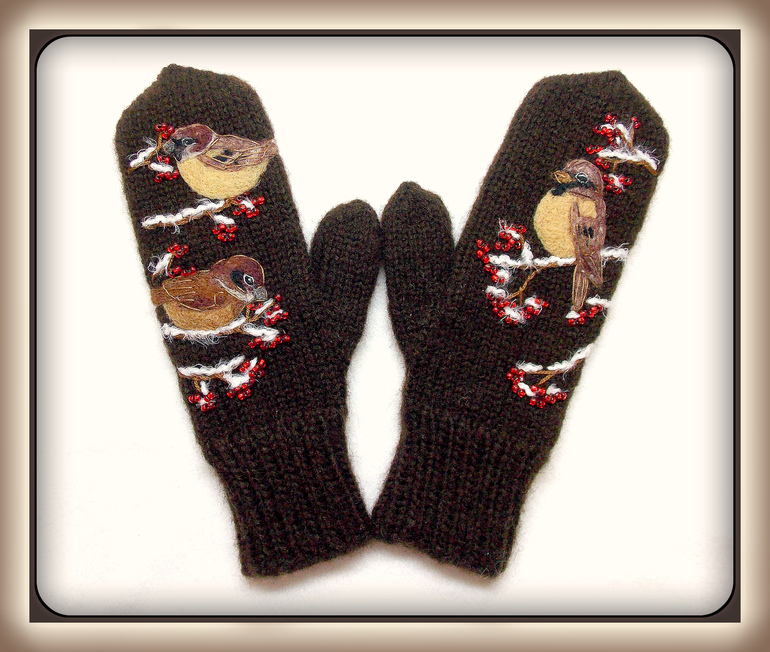 Девочки, сегодня на мои рукавички прилетели новые птички) Впервые сделала воробьишек. Как думаете, справилась?