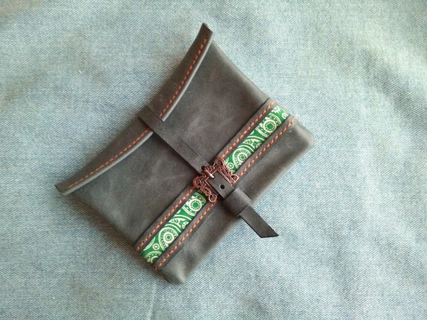 Всем рукодельницам доброго вечера🌹 Хочу показать одну из последних работ мужа: кожаная визитница. Или кардхолдер - кому как больше нравится) Кожа - коричневый краст, затертый воском. Нити синие вощеные. Все швы выполнены вручную. 💪 Хотя в сравнении с сумкой-их там всего ничего) Закрывается на две металлических кнопки,выполненные под старину.