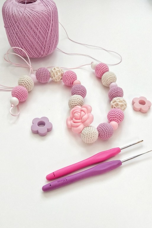 Всего 34 года а моему внучатому племяннику уже годик. Вот связала для него грызунок. Ароматный Крымский можжевельник, силиконовые детали, вязаные бусины, как говорится "то что доктор прописал" )))