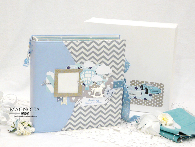 Для малыша Александра был создан настоящий мальчуковый альбом, без цветочков, рюш и прочих нежностей :)