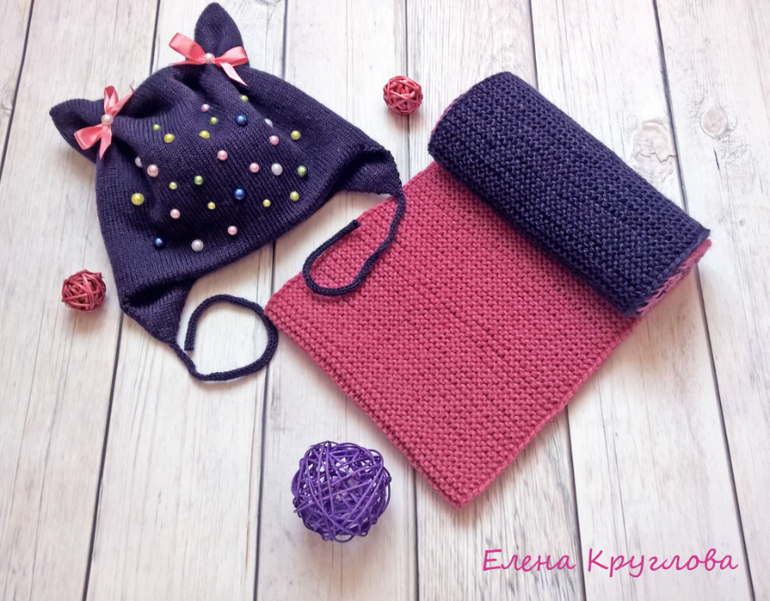 Здравствуйте,дорогие рукодельницы. Давно я ничего не показывала. Сегодня у меня комплект для девочки из Норильска. Там еще холодно, поэтому комплект зимний, между двумя слоями вязаного полотна слой флиса и снуд в два оборота. Под катом еще 4 фото