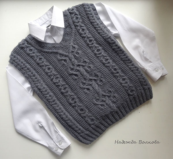 Связала для старшего жилет в школу, пряжа итальянский бобинный акрил, спицы 2,5. Расход 180 г на рост 128-132 см.