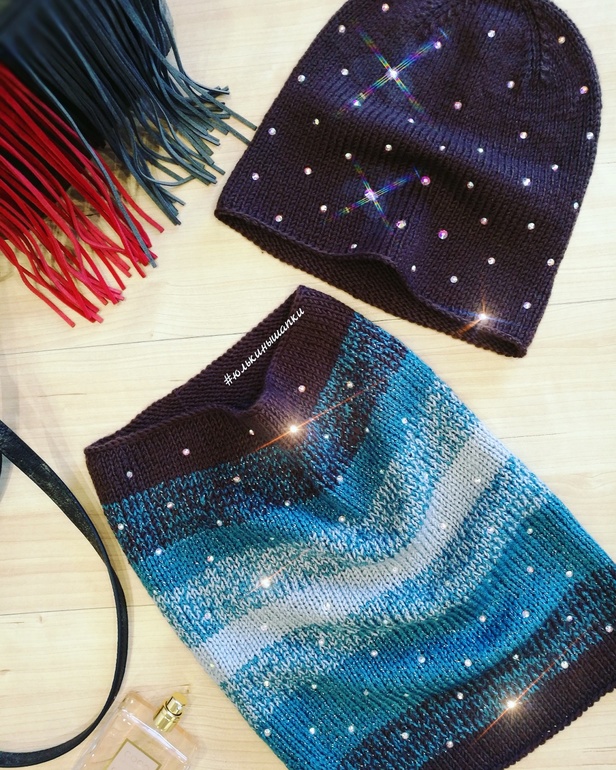 1. Комплект "Ягодный джем", очень легкий и очень теплый. Натуральный состав, альпака на шелке . Два варианта ношения шапки ( в напуск и по голове)