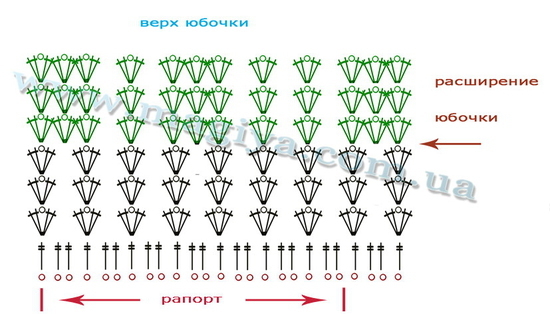 а,вообще,вы можете взять любую схему,а дальше вязала основным узором платья.