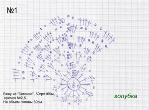2р.: 3 в.п.подъёма (= СН), далее в каждую арку из 3-х в.п.нижнего ряда вяжем *2СН+2в.п.+1СН*, закончить ряд 2СН+в.п. и соед.ст. в 3-ю из 3-х в.п.подъёма;
