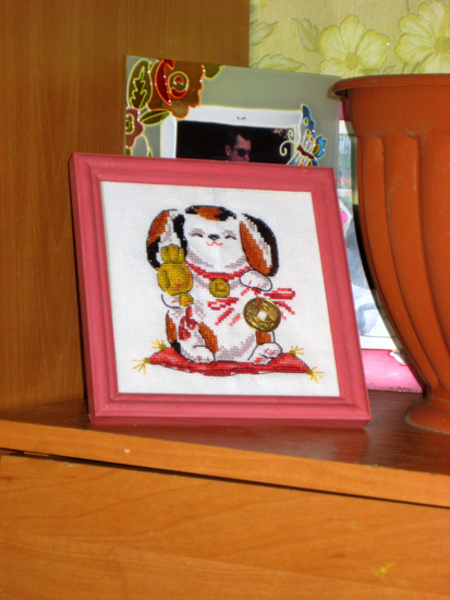 а теперь расскажу своими словами! В подарочке была чудесная сумочка, для Сонечки, которую, та в свою очередь схватила первой! и стала слаживать в нее ниточки, и примерять то в ручке то на плечико одевать!. Наш папа сразу взял в руки рамку, в которой находилось вышитое золотыми ручками нашей феечки полотно. Очень аккуратное и красивое! Феечка ты такая умничка! мне такого искуства никогда не постичь!!! Картина заняла почетное место в нашей спальне и будет нас радывать своей красотой и теплотой, прекрасного человечка из города Сургута!