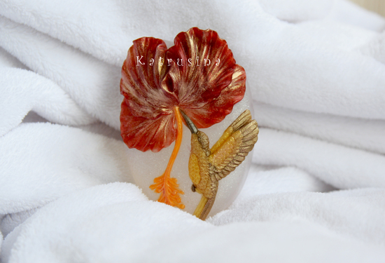 Мыло очень красивое, правда! Только можно я по поводу колибри реплику вставлю? Попробуйте сделать его зеленым + бронза, они тут именно такие летают. Знаете, есть такой весенний жук, красивого зелено-металлического цвета...upd: Вот, картинку нашла :)