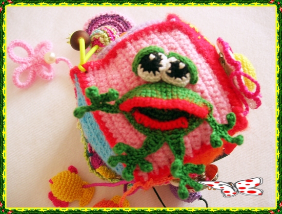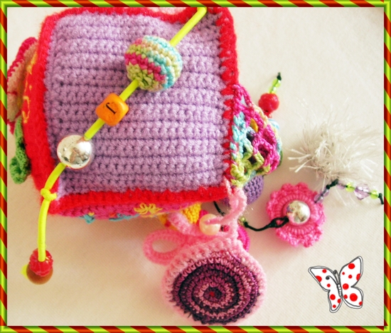 Бусинки на резиночке,в сетку собираем рыбок,пуговицы разных размеров и текстуры,шуршалка погремушка внутри,цветочек на липучке.и бубенчик в
