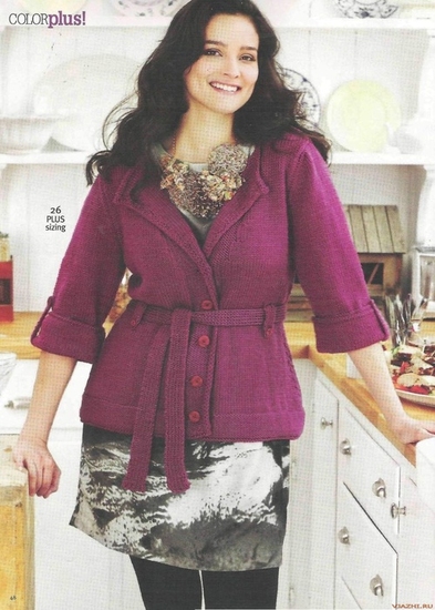 МАТЕРИАЛЫ 6 (6-7-8-9-10) мотков пряжи марки BERROCO VINTAGE (100 гр), цвета #5167 «Ежевика». Прямые вязальные спицы размеров 5 (3.75 мм и 7 (4.50 мм) ИЛИ ТОГО РАЗМЕРА, КОТОРЫЙ ПОЗВОЛИТ СОБЛЮСТИ МАСШТАБ Круговая вязальная спица длиной 29 дюймов, размер 5 (3.75 мм) 4 маркера петель Шесть пуговиц диаметром 1 дюйм
