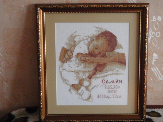 ..я уже подарила свою метрику так они так радовались подарку теперь всем хвастаются ....и мне тоже она нравиться хочу себе такого малыша вышить ниток много осталось ..только без надписи конечно вышью.....