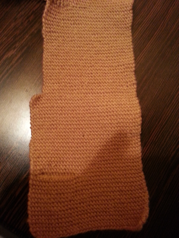 вяжите оставшиеся петли до конца полочки. получается полотно, по середине "дырка"