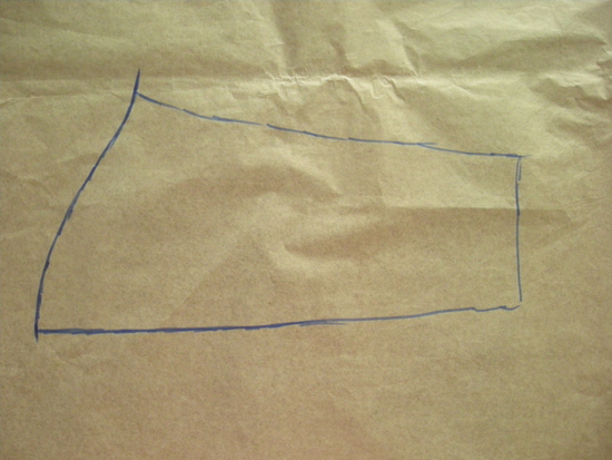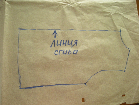 Беру подходящую по размеру ребёнку кофту, закалываю по середине спинки, чтобы не ошибиться с линией середины, потом обвожу на бумаге.