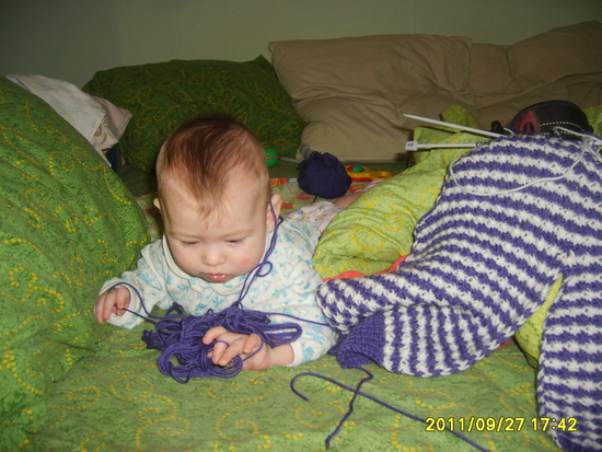 Вот и я наконец довязала. Пока хозяин ещё в животике, доча пристроила своему сынуле.